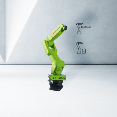FANUC CR-14iA/L features a wide reach and slim profile, making it a collaborative robot that can be used in tight spaces and applications that require handling payloads up to 14 kg. Combining proven Fanuc technology, high reliability, and a standard interface for quick setup, the CR-14iA/L can be used for machine loading and unloading, material handling, and more.