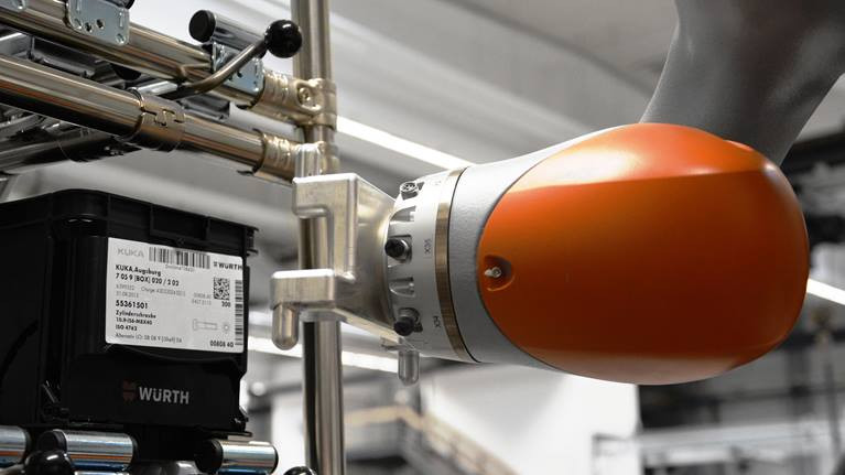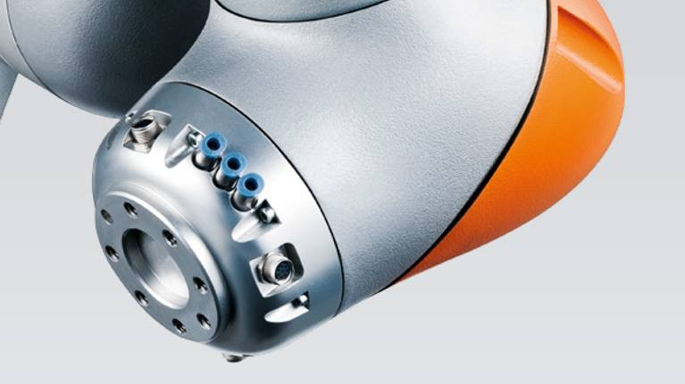 The KUKA LBR iiwa 7 R800 collaborative robot is compact and lightweight, made of aluminum. 7 degrees of freedom allow it to be flexible and precise, and sensors facilitate safe work with people. The LBR iiwa R800 can be programmed simply by moving it with your hand.