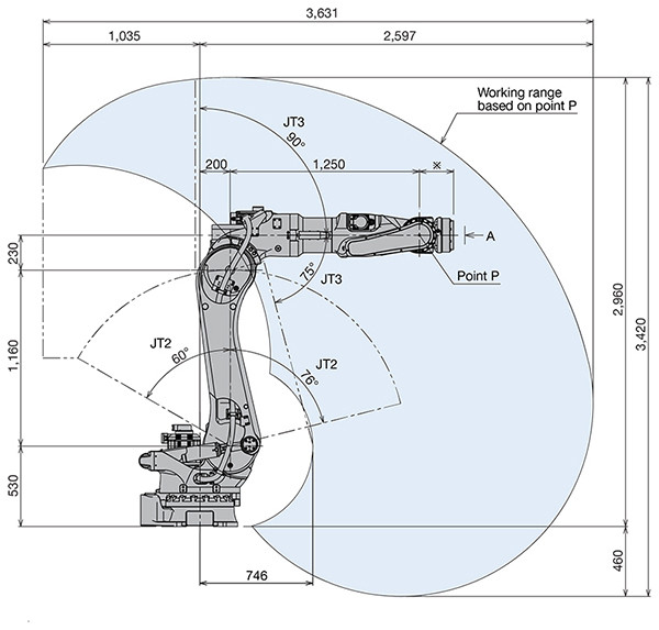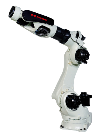 The BX165L is a 6-axis hollow wrist industrial robot from Kawasaki capable of handling objects weighing up to 165 kg. The BX165L features high speed and positioning accuracy, an average working range of 2597 mm, and is suitable for spot welding automation, machine maintenance, assembly, and material handling.