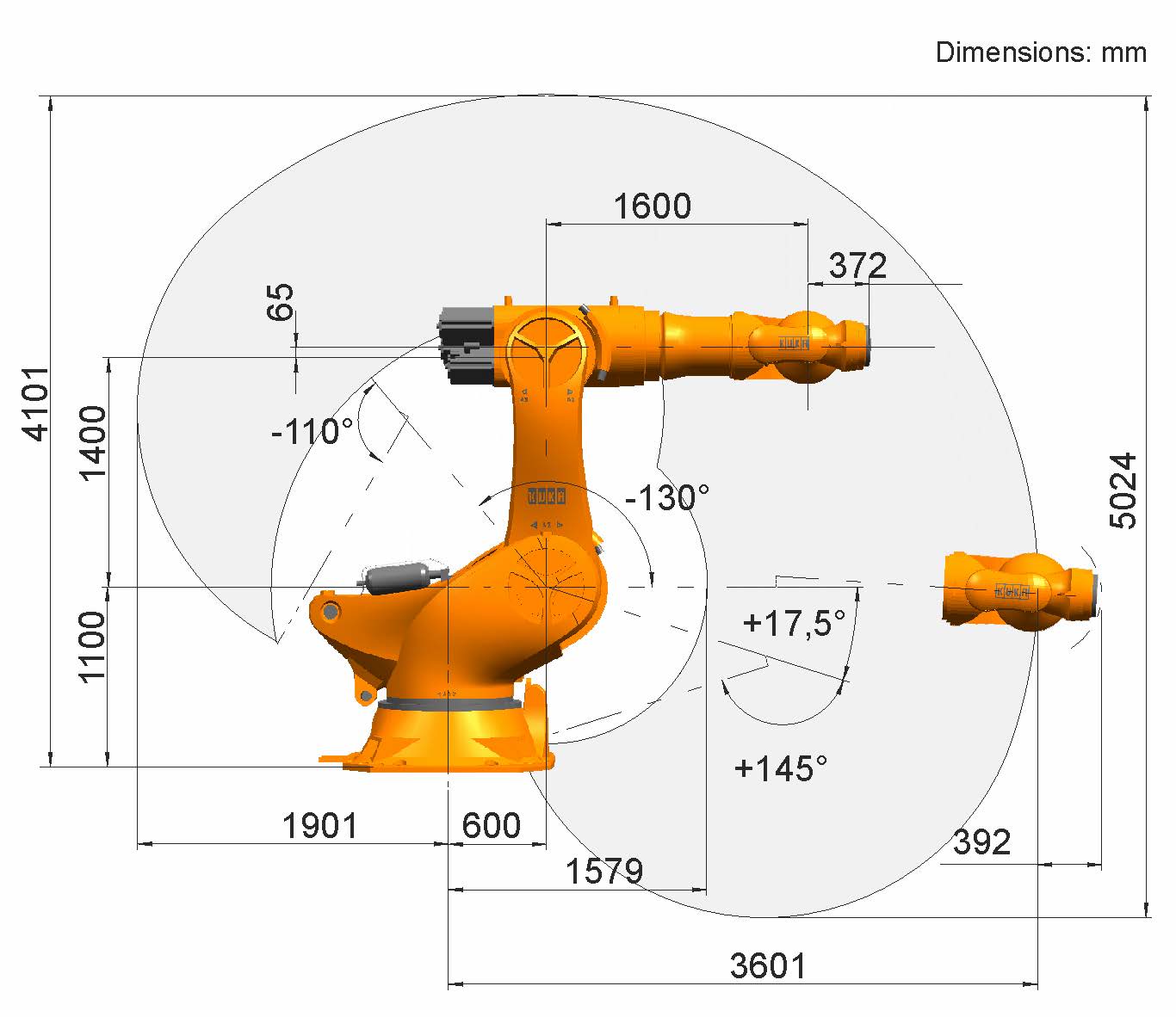 KR 1000 L750 titan is a versatile and heavy-duty 6-axis industrial robot from KUKA of the KR 1000 titan series. KUKA KR 1000 L750 titan is capable of handling loads up to 750 kg in a working range of 3601 mm. The robot is suitable for a wide range of tasks from welding to palletizing and assembly.