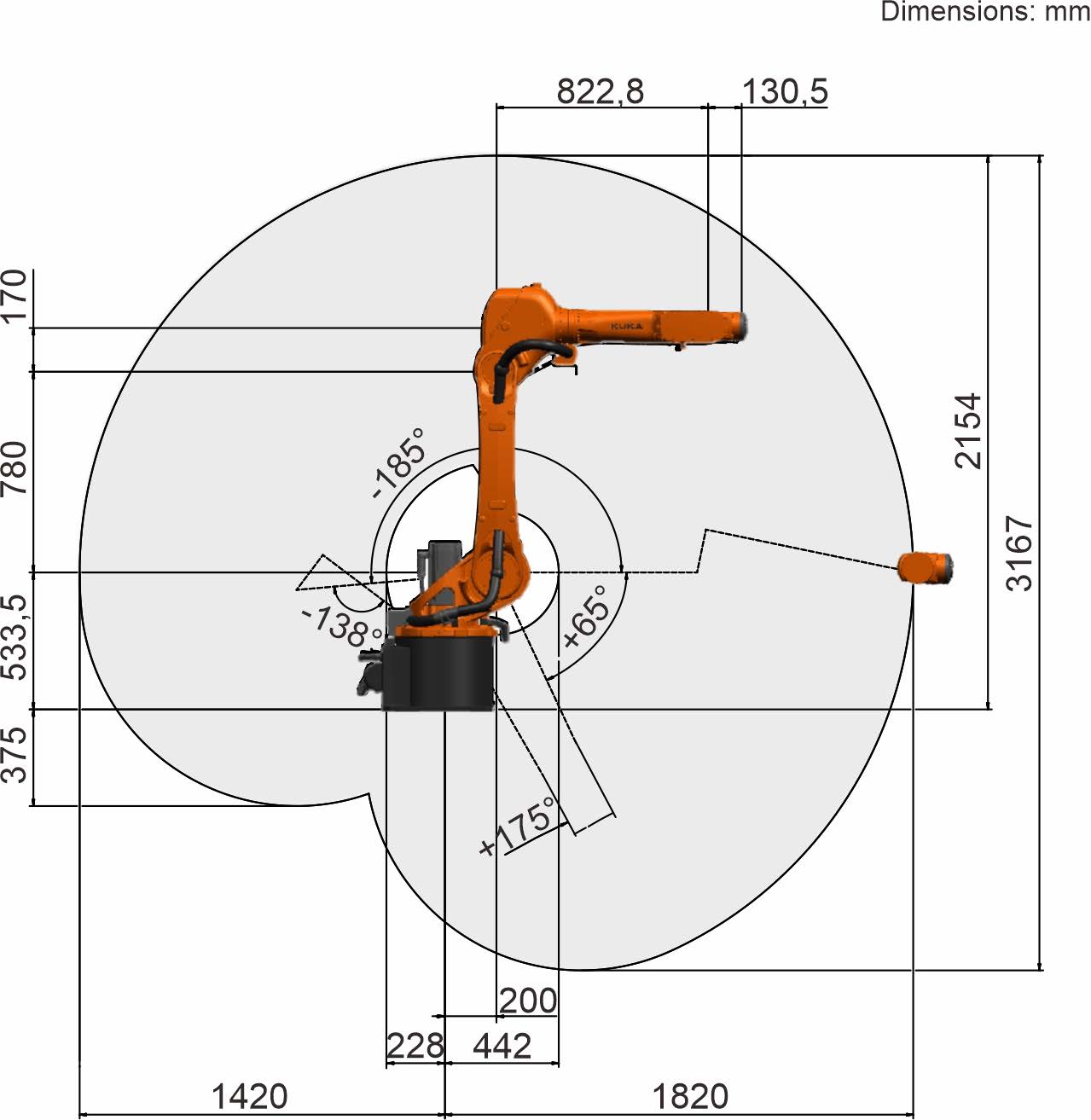 KR 20 R1810-2 6-axis industrial robot with compact and hollow design from KUKA, capable of providing maximum productivity due to its high speed and positioning accuracy, with minimal maintenance and low costs. KR 20 R1810-2 is ideal for work in confined spaces, for tasks requiring handling of loads up to 20 kg, assembly, packaging and welding.