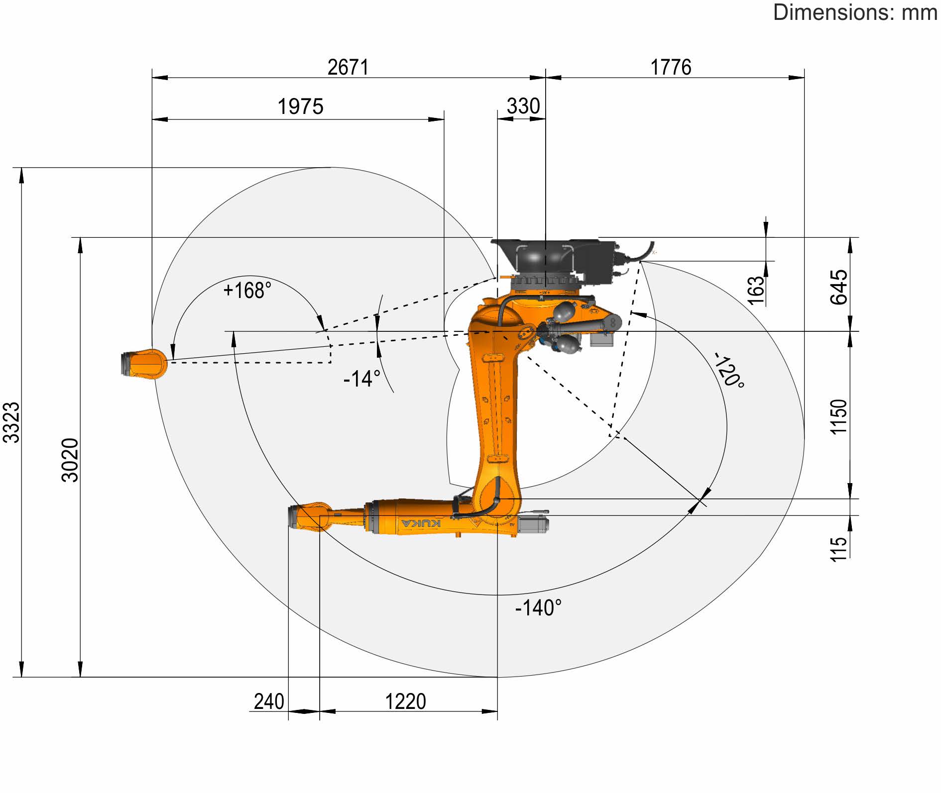 KR 300 R2700-2 - 6-axis universal industrial robot with a large work area from KUKA from the KR QUANTEC series, capable of ensuring maximum quality and flexibility in the production process. KR 300 R2700-2 is ideal for handling loads up to 300 kg, assembly, welding and palletizing.