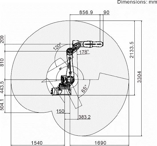 Large radius of action 1813 mm