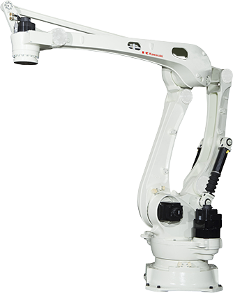CP300L - 4-axis industrial robot palletizer from Kawasaki with one of the best cycle times, wide travel range, 300 kg load capacity, compact and energy-saving controller and simple and intuitive operation. CP300L will provide reliability and high speed and accuracy of pallet assembly and help to increase the efficiency of production lines.