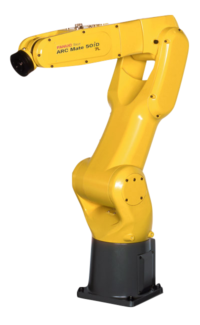 FANUC ARC Mate 50iD/7L 6-axis industrial robot for high-speed arc welding with a working radius of 911 mm. ARC Mate 50iD/7L has a thin and lightweight design, repeatability of ±0.018 mm and is capable of withstanding a load of up to 7 kg when performing precision welds.