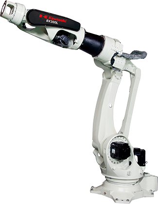 The BX250L is a 6-axis hollow wrist industrial robot from Kawasaki capable of handling objects weighing up to 250 kg. The BX250L features high speed and positioning accuracy, an average working range of 2812 mm, and is suitable for spot welding automation, machine maintenance, assembly, and material handling.
